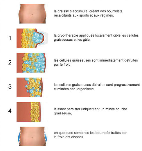 Son principe est de provoquer une cristallisation par le froid des cellules graisseuses sous-cutanées (adipocytes) qui induit leur autodestruction et leur élimination lente sur deux mois.